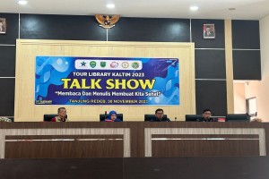 GARISPENA.CO - BERAU - Talk show bertajuk Membaca dan Menulis Membuat Kita Sehat menjadi agenda pertama dalam rangkaian Tour Library Kaltim 2023 di Berau. Kegiatan tersebut terselenggara di gedung Bapelitbang, Kamis (30/11) pagi. Sebanyak 250 peserta dari kalangan pelajar SMA, mahasiswa, guru, dan pegiat literasi yang ambil bagian dalam kegiatan tersebut.