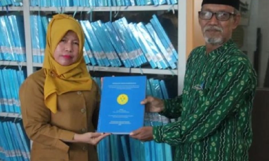 GARISPENA.CO - SAMARINDA - Akademisi Universitas 17 Agustus 1945 (Untag) Samarinda, H.Arpan SH,M.Pd, menyerahkan tesis yang ia tulis pada 2003 kepada Dinas Perpustakaan dan Kearsipan (DPK) Kaltim bersamaan saat mendampingi mahasiswa program Administrasi Publik Untag, kala bertandang ke DPK Kaltim, pada Senin (5/6).
