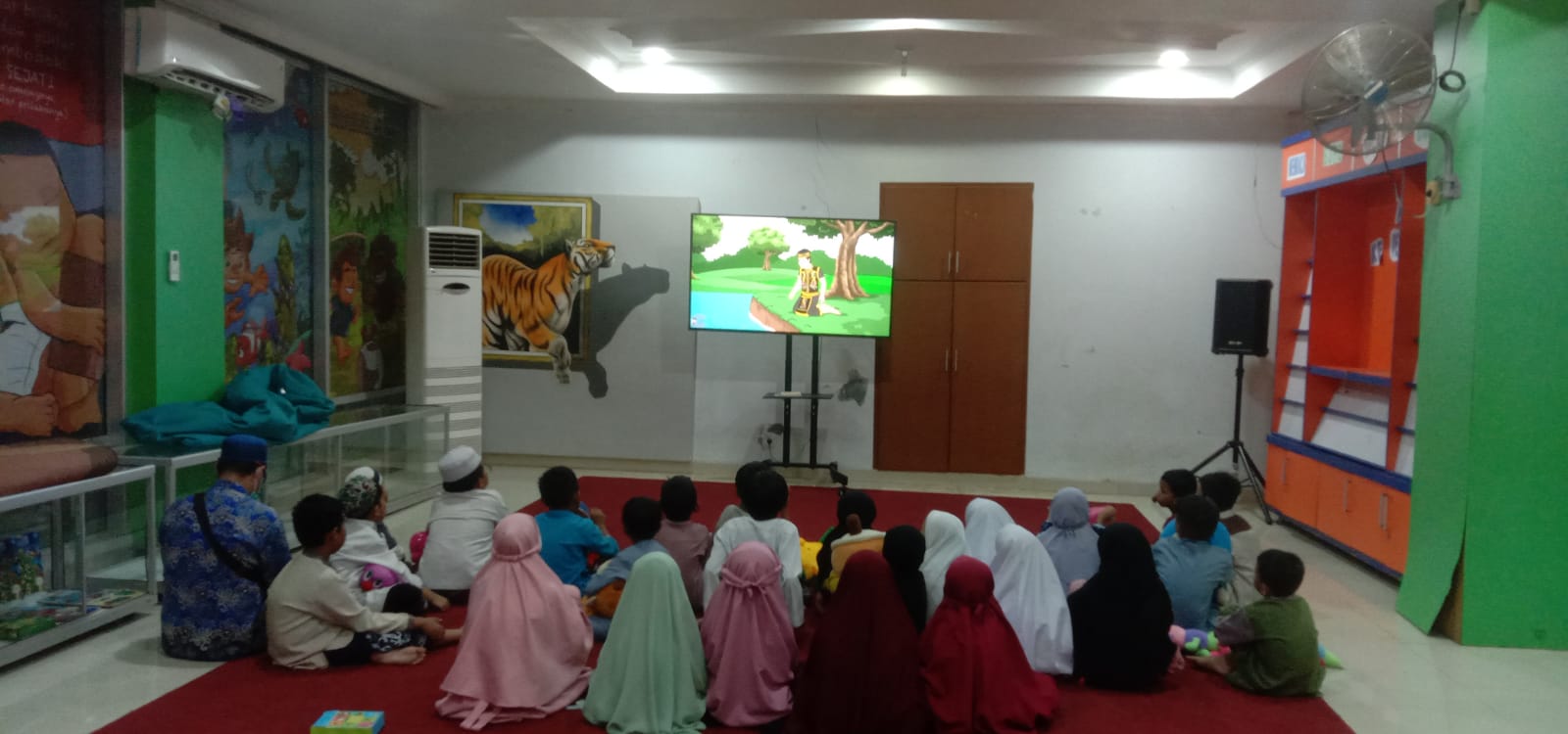Di ruang perpustakaan tersebut, anak-anak tidak hanya diarahkan untuk membaca buku, tapi juga menonton cerita legenda dalam bentuk film yang tentunya dipandu oleh petugas ruangan.
