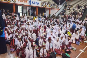 ANTUSIAS: Seribu peserta dari 19 sekolah dasar ambil bagian dalam kegiatan Mendongeng dan Membaca Bersama garapan DPK Kaltim dan DPK Bontang.