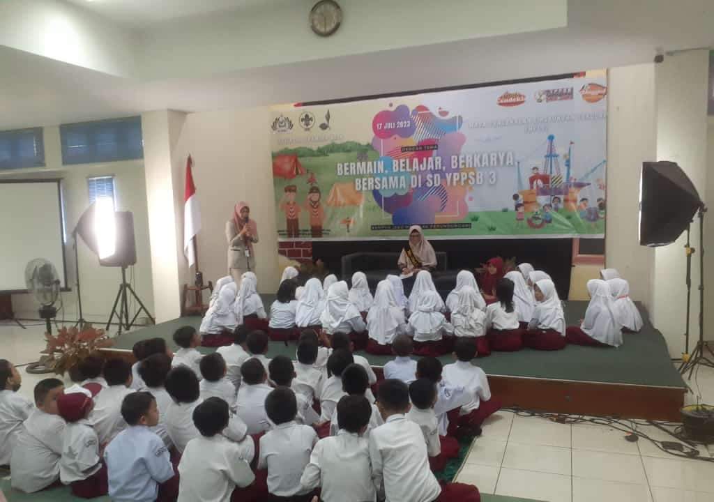 "Ayo membaca banyak ilmu makin seru," kata Siti Robiah didampingi kepala SD YPPSB 3.