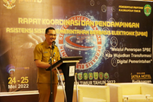 Pemerintah Provinsi Kalimantan Timur melalui Dinas Komunikasi dan Informatika menyelenggarakan Rapat Koordinasi Sistem Pemerintahan Berbasis Elektronik (SPBE), Di Jati Sungkai Room Hotel Jatra Balikpapan, Selasa (24/5/2022).