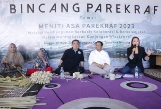 Dinas Pariwisata Provinsi Kalimantan Timur menggelar Bincang Parekraf dengan tema Meniti Asa Parekraf 2023 "Melalui Pembangunan Berbasis Kolaborasi & Berkelanjutan Dalam Meningkatkan Kunjungan Wisatawan" di Kampung Ketupat, Minggu (19/03/23).