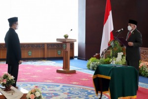 DILANTIK: Hasoloan Manalu dipercaya jadi Kepala BPKP Kaltim dan Dikukuhkan oleh Gubernur Kaltim Isran Noor (kanan).