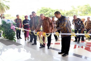 GEDUNG BARU: Gubernur Kaltim Isran Noor (dua kanan) saat memotong pita di gedung baru BPKAD, Jalan Kusuma Bangsa.