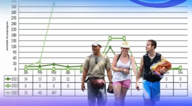Marinda menyebutkan jumlah kunjungan wisman selama periode Januari sampai dengan Maret 2023 sebanyak 400 kunjungan wisatawan.