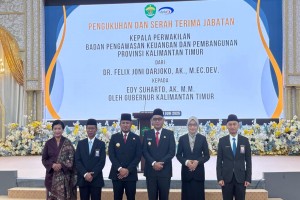 Samarinda - Gubernur Kalimantan Timur (Kaltim), Rudy Masâud, secara resmi mengukuhkan dan memimpin serah terima jabatan Kepala Perwakilan Badan Pengawasan Keuangan dan Pembangunan (BPKP) Provinsi Kalimantan Timur, dari Dr Felix Joni Darjoko kepada Edy Suharto, Senin (30/6/2025), di Pendopo Odah Etam, Samarinda.