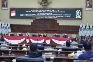 GARISPENA.CO - SAMARINDA - Mewakili Gubernur Provinsi Kalimantan Timur (Kaltim) Isran Noor, Sekretaris Daerah (Sekda) Kaltim Sri Wahyuni pada hari Senin (05/06/23), menghadiri sekaligus menyampaikan Nota Keuangan dan Ranperda tentang Pertanggungjawaban Pelaksanaan APBD Tahun Anggaran (TA) 2022 dalam Rapat Paripurna ke-18, yang digelar oleh Dewan Perwakilan Rakyat Daerah (DPRD) Kaltim.
