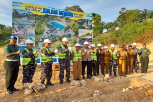 GARISPENA.CO - SANGATTA - Komandan Lantamal XIII Laksamana Pertama TNI Deni Herman bersama Bupati Kutim Ardiansyah Sulaiman serta Danlanal Sangatta Letkol Laut (P) Shodikin melakukan peletakan batu pertama pembangunan kolam renang. Lokasi dekat Mako Lanal Sangatta.