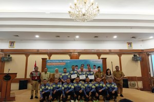 Asisten I Setkab Kukar Akhmad Taufik Hidayat bersama para peserta pelatihan Basic Operator Batch 2 di Hotel Grand Elty Singgasana Tenggarong. (garispena)
