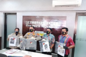 Polresta Balikpapan menunjukan barang bukti terkait penyebaran video porno yang dilakukan siswa-siswi di Balikpapan.