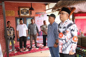 FOTO : Anggota DPRD Kaltim H Ali Hamdi (kacamata) hadir menyanyikan lagu kebangsaan Indonesia raya di Sosper Desa Manunggal Jaya.