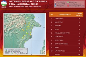 Jumlah titik panas tersebar pada lima daerah yakni Samarinda (1), Paser (1), Kutai Timur (16), Kutai Kartanegara (2) dan Berau (7).