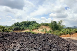 Tampak gundukan emas hitam dan alat berat Eksavator yang sedang bekerja di lahan seluas empat hektar tersebut.