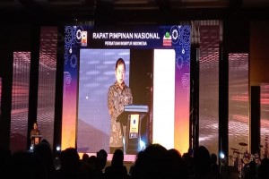 FOTO : Menteri PPN/Kepala Bappenas Suharso Monoarfa menjadi pembicara Rapat Pimpinan Nasional Persatuan Insinyur Indonesia di Balikpapan, Jumat (20/1/2023).