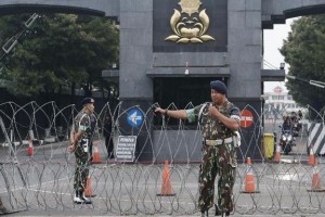 Sejumlah polisi juga terlihat masih bersiaga dengan seragam loreng dan rompi anti peluru, serta menenteng senapan laras panjang. Mako Brimob pada malam ini terpantau hanya dilalui kendaraan warga yang keluar masuk lewat gerbang tersebut.